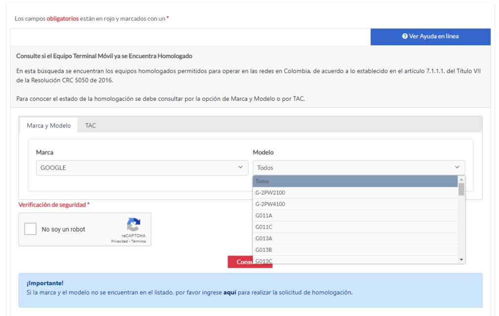 El ente cargado se llama «Comisión de regulación de comunicaciones Colombia» y acá podremos encontrar información y herramientas muy útiles que permiten saber si los telefonos se pueden usar en Colombia o no.