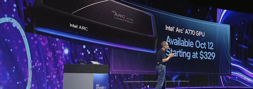 La nueva tarjeta de video de Intel por fin tiene fecha de lanzamiento y precio, Pat Gelsinger ha sido el encargado de dar la noticia en el evento realizado el día de hoy, por el momento solo la ARC A770 Edición limitada es la que tiene fecha y precio, la vamos a ver en el mercado el 12 de octubre por $329 dólares.